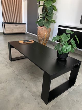 Se vende mesa de centro de madera en melamina color negro en buen estado