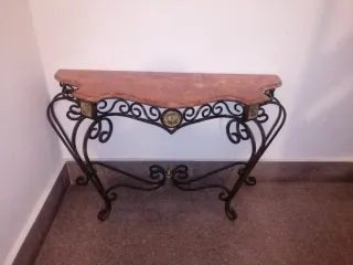 Mesa de forja con tapa de mármol