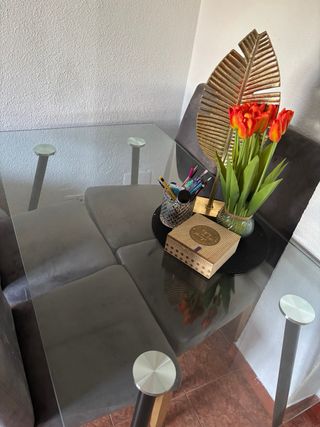 REBAJA MESA DE CRISTAL + 4 SILLAS POLIPIEL