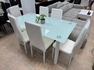 Nuevo conjunto mesa cristal y 6 sillas