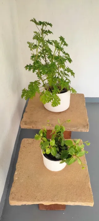 Dos mesas de madera y piedra 22€ las dos