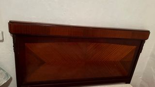 Conjunto de cabecero y 2 mesitas de noche de caoba. Tienen más de 100 años, eran de mis abuelos. Por tamaño y peso no se envían. Recogida en Valencia capital. - Cabecero de madera con detalles tallados. - Mesitas de noche a juego.