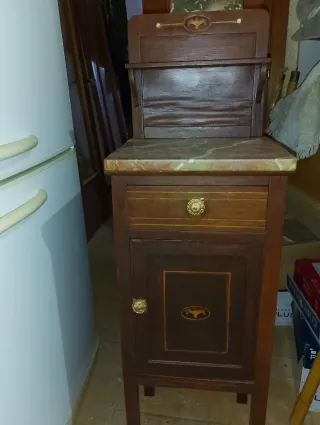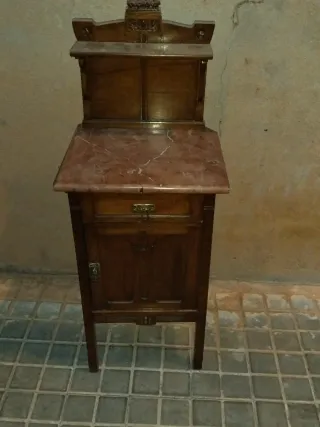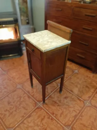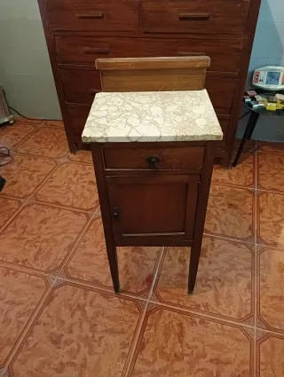 Mesita de noche antigua madera y mármol