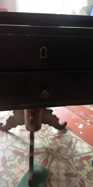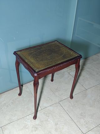 Mesita auxiliar antigua de madera y piel