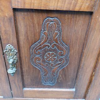 Mesita de noche de castaño.De gran tamaño y almacenaje. Tiradores dorados. Bien conservada y sin carcoma. Al ser un mueble recuperado tiene algunas señales de desgaste en el tablero interior. Ideas 💡: Con una lámpara y un perchero en la entrada. Como mesa-consola -cómoda auxiliar o como mesita de luz. Pintarla para una habitación infantil. Tendencia de combinarla con otra mesita de noche totalmente diferente.( Mira las ideas en la últimas fotos) *Pesa 15kg. Vintage/ Ikea/ zara home/ shabby chic/ westwing/ maison du monde/ farm house/ aparador/ aesthetic/ brocante/Mid century/ Art déco/antigüedad /retro/ tocador/sinfonier.