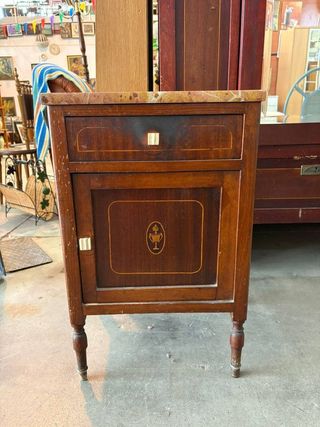 Mesita de noche antigua mármol y madera