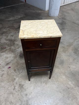 Mesita de noche antigua con mármol y puerta, medidas 62 cm alto, 35 cm fondo, 45 cm ancho