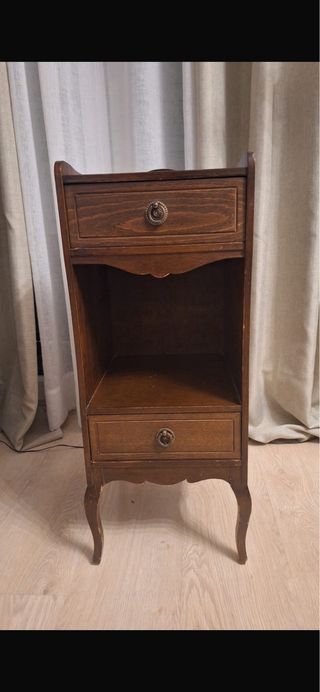Mesita de noche de madera antigua.