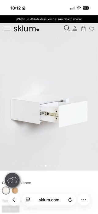 Mesita de noche flotante marca Sklum, sin abrir, en su embalaje original. 30cm - Acabado en blanco. - Diseño minimalista.