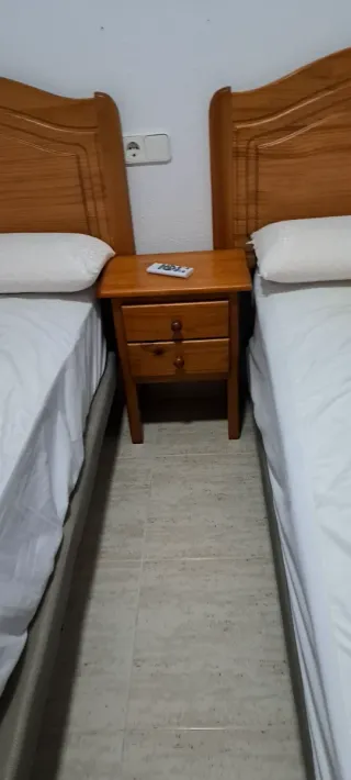 Mesita de noche de madera con cajones...cabeceros.
