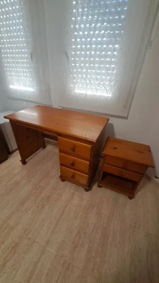 Vendo habitación juvenil completa en madera de pino, en buen estado, resistente y bien cuidada. El conjunto incluye: Armario: 110 cm de ancho Mesa escritorio: 110 cm de ancho Estantería: 65 cm de ancho Cabecero para cama de 90: 110 cm de ancho Mesita de noche: 52 cm de ancho Todo el mobiliario es de madera de pino. 👉 Precio negociable 👉 Posibilidad de vender el conjunto completo o los muebles por separado 📌 Condiciones: No incluye transporte Imprescindible venir a verlo El comprador se encarga de desmontar y llevárselo Interesados, contactar sin compromiso.