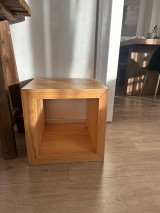 Mesita auxiliar robusta de diseño cuadrado. - Fabricada en madera de pino natural. - Hecha a medida. - Acabado liso y cálido. - Robusta y resistente De conjunto con la mesa de centro que está en mi perfil.