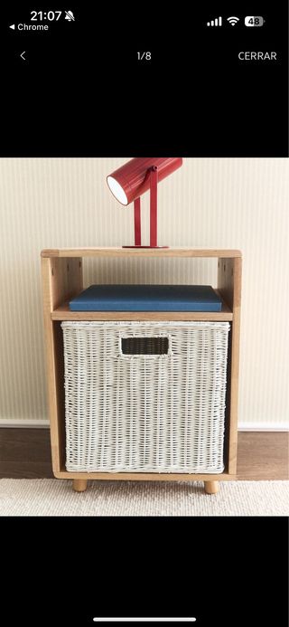 Mesita de noche con un diseño moderno y funcional. Perfecta para añadir un toque de calidez a tu habitación. Estructura de madera de pino, color muy bonito. Esta como nueva. Comprada hace unos meses. No negociable.