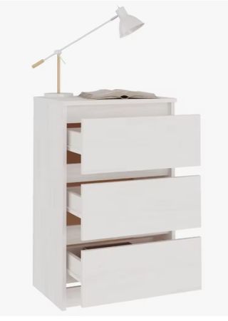 Opcion de compra: Recogida en el centro de Barcelona Directamente por Wallapop Pago contra reembolso (opción de envío más económica aquí) Esta mesita de noche está hecha de madera maciza de pino, lo que garantiza su robustez, durabilidad y servicio duradero. Tres cajones proporcionan un amplio espacio de almacenamiento para mantener tus artículos pequeños bien organizados y al alcance. Además, esta mesita de noche es fácil de limpiar con un paño húmedo. Color: Blanco Material: Madera maciza de pino Dimensiones: 40 x 29,5 x 64 cm (largo x ancho x alto) Requiere montaje: Sí ref. 7983456288840 // 39