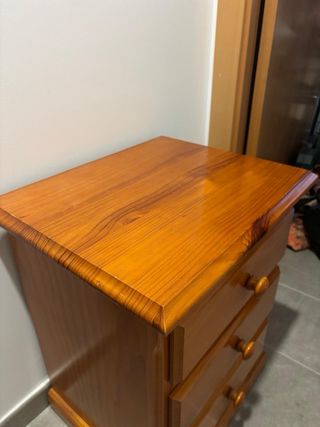Vendo mesita de noche de pino macizo en buen estado. Medidas en las fotos. A recoger en Corbera de Llobregat