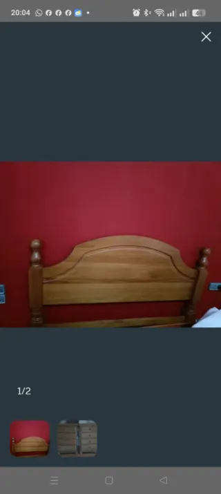 Se vende cabezal de cama de 135 cm fabricado en pino macizo. Incluye dos mesitas de noche a juego. Talladas. Como nuevo. - Diseño clásico y elegante. - Materiales de calidad.