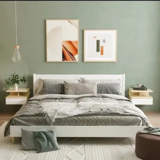 NUEVAS, SIN USAR Las vendemos porque no combinan con los otros muebles de la habitación. Mesitas de noche con un diseño moderno y elegante, perfecta para añadir un toque de estilo a tu habitación. - Aglomerado tipo madera natural. - Diseño flotante para un look minimalista. Una ya está ensamblada y lista para colgar, la otra sin abrir en su caja.
