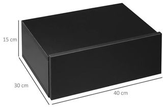 Conjunto de dos mesitas de noche flotantes con un diseño moderno. - Acabado en color negro. - Fabricadas con materiales de calidad. 831-338BK HOMCOM Juego de 2 Mesitas de Noche Flotantes Mesitas de Noche Colgantes con 1 Cajón y Estante Abierto para Dormitorio 35x32x22,5 cm Negro