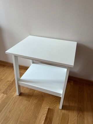 Preciosa mesita auxiliar de Ikea, ideal para cualquier habitación de tu casa. Es blanca y de madera. - Perfecta como mesita de noche o auxiliar en el salón. - Diseño sencillo y elegante. - Se encuentra en buen estado, con alguna pequeña marca de uso en la superficie.