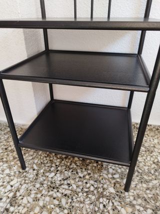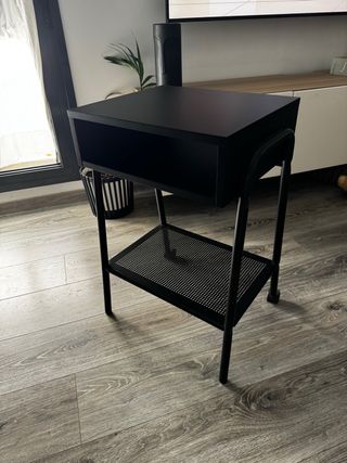 Mesa auxiliar de diseño moderno y funcional. Vendo por no usar. Esta nueva. - Estructura metálica. - Acabado en color negro.