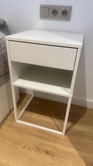 mesita de noche blanca con dos cajones tengo dos 60€ no son ikea son de tiendas y estan impecables