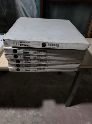 Se venden 6 mesas auxiliares Ikea modelo GLADOM en color negro. Son prácticas y versátiles. - Medidas: 45x53 cm (17 1/2x20 5/8). - Diseño moderno y funcional. Nuevas en su caja
