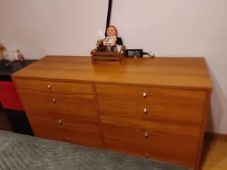 Conjunto de cómoda y mesitas. En muy buen estado. Cómoda: Alto: 0,84 Ancho: 1,48 Fondo: 0,49 Mesitas: Alto: 062 Ancho: 0,40 Fondo: 0,49 También vendo, el conjunto de lámparas de techo, y de mesita que aparecen en la fotografía por 35€ Solo venta en mano.