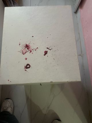 Tiene manchas rojas es esmalte de unñas se puede quitar tiene marcas de degaste y en lls cajones podeis poner pomos los tenia pero se calleron de ahi el precio