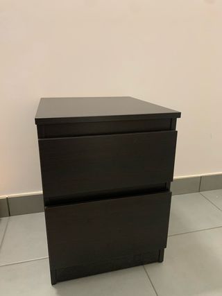 Cómoda de dos cajones de la serie Malm de Ikea. Alguna marca pequeña de uso , peronel estado general es bastante bueno . Sirve tambien de mesita de noche . En ikea cuesta el doble. ( 50 euros ) - Dos cajones amplios. - Acabado liso y fácil de limpiar. Medidas : 40 cm de ancho x 48 cm de fondo x 55 cm de alto .