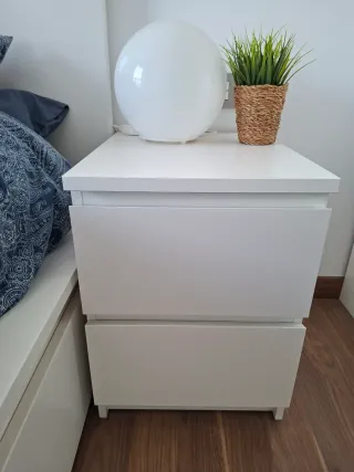 Se venden dos mesitas de noche modelo Malm de Ikea. Son un complemento perfecto para cualquier dormitorio. - Diseño moderno y funcional. - Dos cajones amplios para almacenamiento.