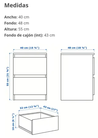 Cómoda de dos cajones de IKEA, modelo MALM.
