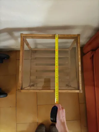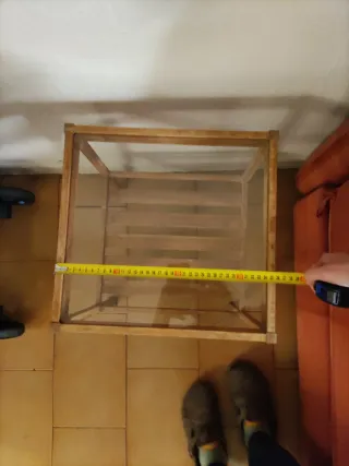 Mesita auxiliar de Ikea con estructura de bambu y superficie de cristal. - Diseño moderno y funcional. - Combina bambu y cristal para un acabado elegante. Marcas de uso (ver fotos). Marca de agua.
