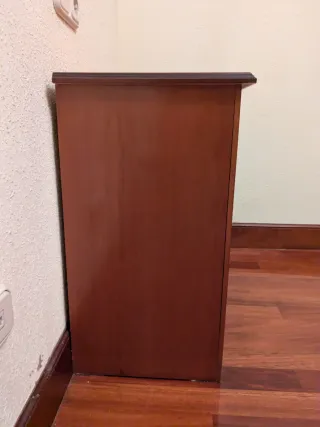Mueble de madera con un acabado oscuro y elegante. - Diseño clásico con tiradores metálicos. - Tres cajones amplios para almacenamiento. 30€ cada uno,los dos 50€ Conjunto cajonera y 2 noches 90€ Tengo la cajonera a juego entra en mi perfil. Puedes mirarlo en persona sin compromiso.