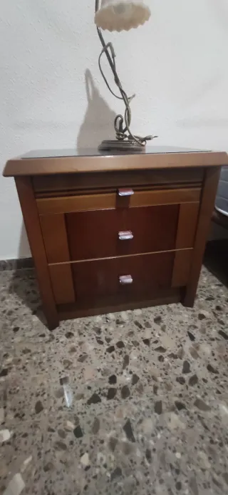 Mesita de noche de madera con dos cajones amplios. €30 por cada una - Diseño moderno y funcional. - Acabado natural de la madera.