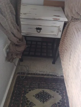Mesita de noche con un diseño clásico y elegante. Perfecta para añadir un toque rústico a tu habitación. - Cajón con tirador. - Patas torneadas. - Estructura robusta. Recoger en san jordi ( ibiza )
