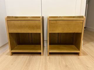 2 mesita de noche de madera, perfectas para complementar tu dormitorio. Precio por cada una 15€ . Las dos 25€ - Diseño rústico y funcional. - Cada mesita cuenta con un cajón y un espacio abierto. Recoger en Cerdanyola barrio canaletas donde cafetería savic