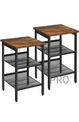 Mesita de Noche, Juego de 2 Mesitas de Estilo Industrial, Mesa Lateral, con Estantes de Malla Ajustable, Apto para Salón, Dormitorio, Vestíbulo, Oficina, Marrón Rústico y Negro LET24X