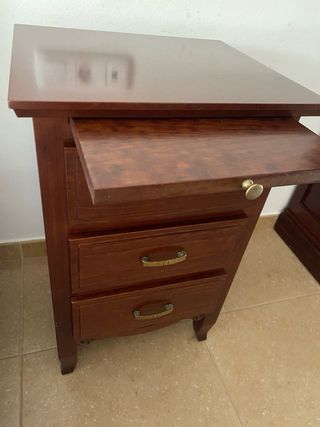 Madera maciza: cabecero, mesita noche, sinfonier.