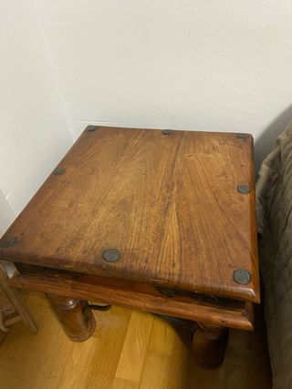 Se venden dos mesitas de noche de madera. Son de color marrón y tienen un cajón. Están en buen estado, rusticas - Madera maciza. - Un cajón con tirador metálico. - Patas torneadas. 15€ la unidad