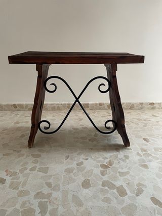 Mesa auxiliar madera y forja