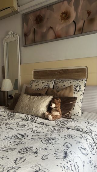 Mesita de noche y cabecero y cojines a juego