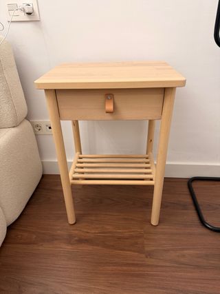 Mesita Noche Ikea BJÖRKSÄS Madera y Cuero