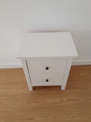 Mesita de noche modelo Hemnes de Ikea. Dos cajones con tiradores negros. Ya montado. Precio original 79€. Tengo dos unidades, precio unitario 49€, vendo por separado o juntas.