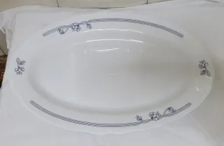 Elegante bandeja de porcelana con un delicado diseño. - Motivos florales en azul. - Ribete con líneas azules.