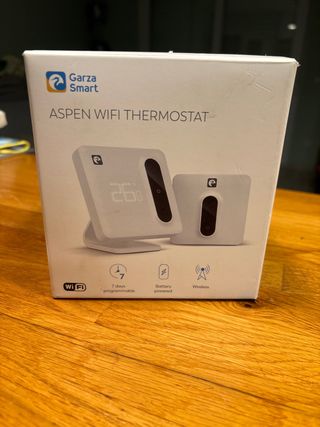 Termostato inteligente Aspen de Garza Smart con conexión Wi-Fi. - Conectividad Wi-Fi. - Programable 7 días. - Funciona con baterías. Se vende por incompatibilidad con caldera. Se incluye ticket de compra con precio origina y GARANTIA
