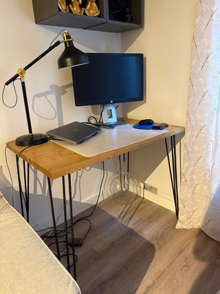 Escritorio con superficie de madera maciza de roble y patas de metal. Estado impecable. Es de la firma blenom design. Medidas 100x60 - Diseño moderno y robusto. - Acabado natural de la madera. Recogida en Mieres