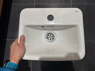 Lavabo de porcelana de la marca Roca, de tamaño pequeño. 35x28cm No se envia - Diseño moderno y compacto. - Acabado blanco brillante.