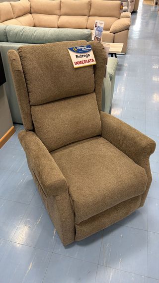 Cómodo sillón relax con palanca tapizado en tela. - Diseño moderno y confortable. - Tonos neutros que combinan fácilmente.