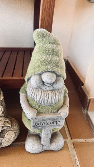 Figura decorativa de un simpático enano de jardín. Añade un toque encantador a tu espacio exterior. - Material de piedra con acabado texturizado. - Diseño clásico de enano con sombrero cónico. Hay dis enanos uno es mas grande y otro mas pequeno Cada uno 15€ juntos 25€ Venta en persona en malaga marbella fuengirola benalmadena mijas costa etc Oportunidad!! Me mudo vendo todo mira mi perfil y llevate mas cosas por un modico precio gracias