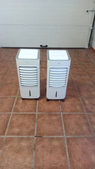 Se venden dos climatizadores humidificadores por agua de la marca Nedis. - Color gris y blanco. - Fabricados en plástico. No envíos. Si vive en la provincia de Málaga se puede negociar el envío. Se pueden vender por separado.